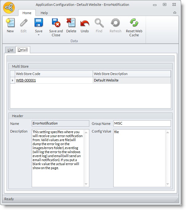 In setting this take note of the following:- Setting ErrorNotification to any of these values shows a generalized error message on the screen. Leaving this blank (default), however, will show the actual error on the page.