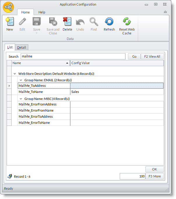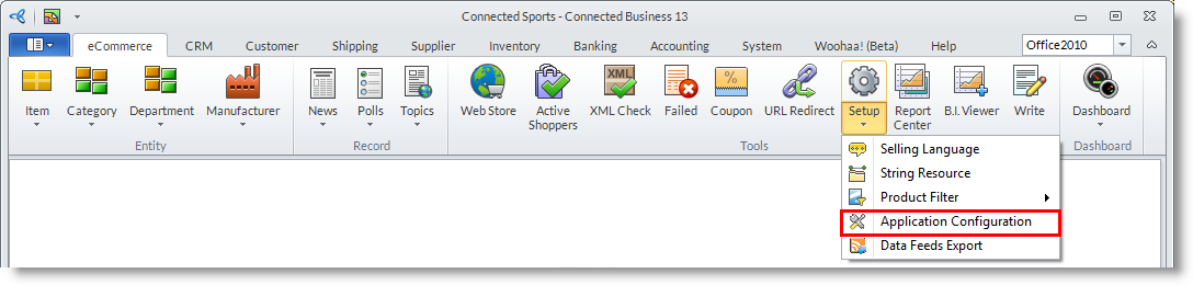 - From the eCommerce module > Setup >Application Configuration option.