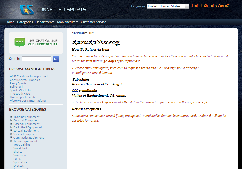 | returns | Return Policy |