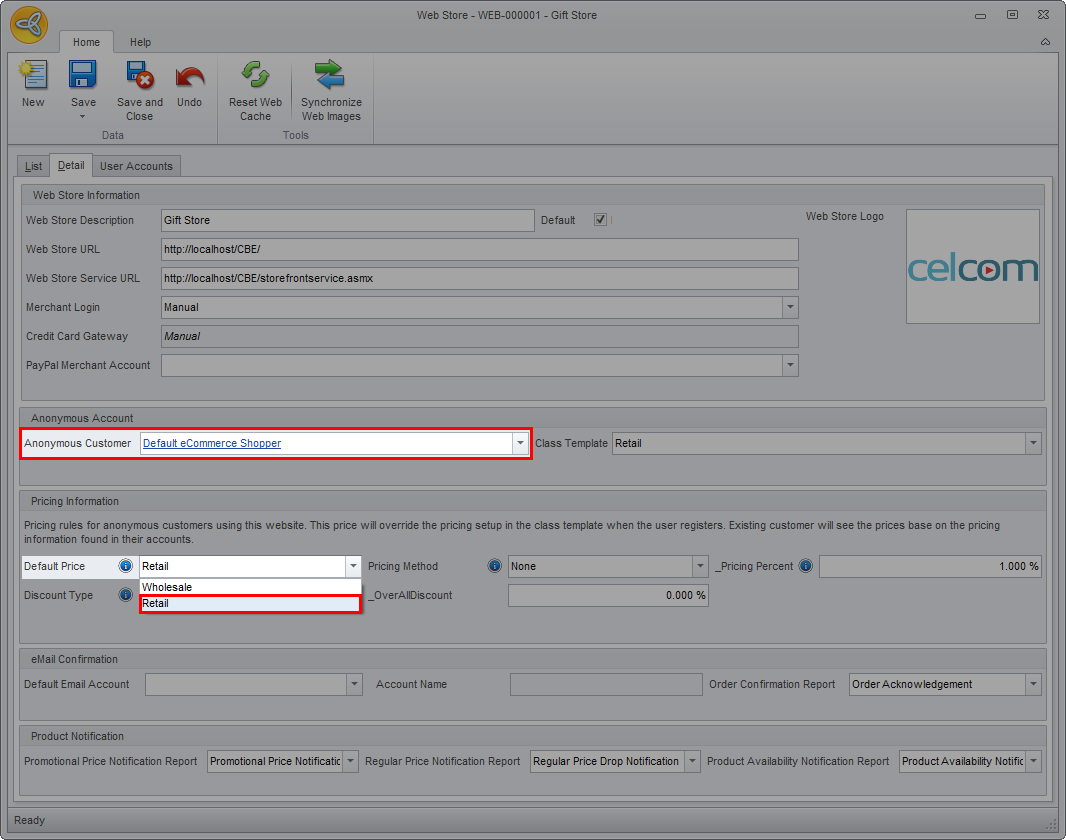 Set Webstore As Wholesale
