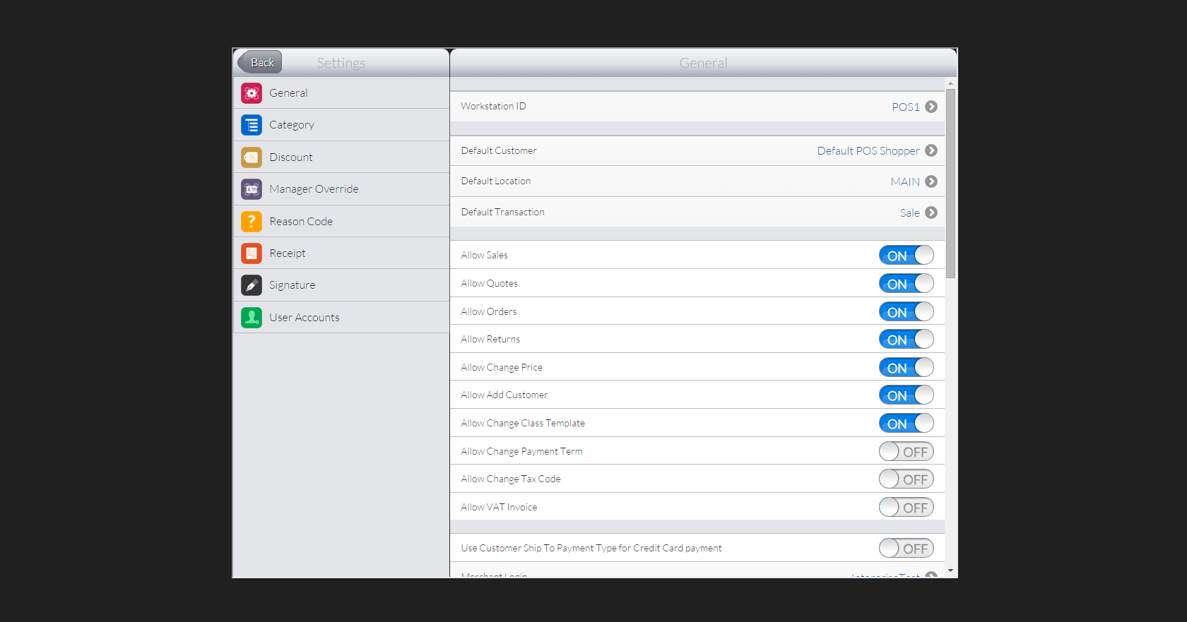 | Default POS Transaction | The default transaction assigned in the POS screen. You may select order, sale, return and quote as the default transaction. |