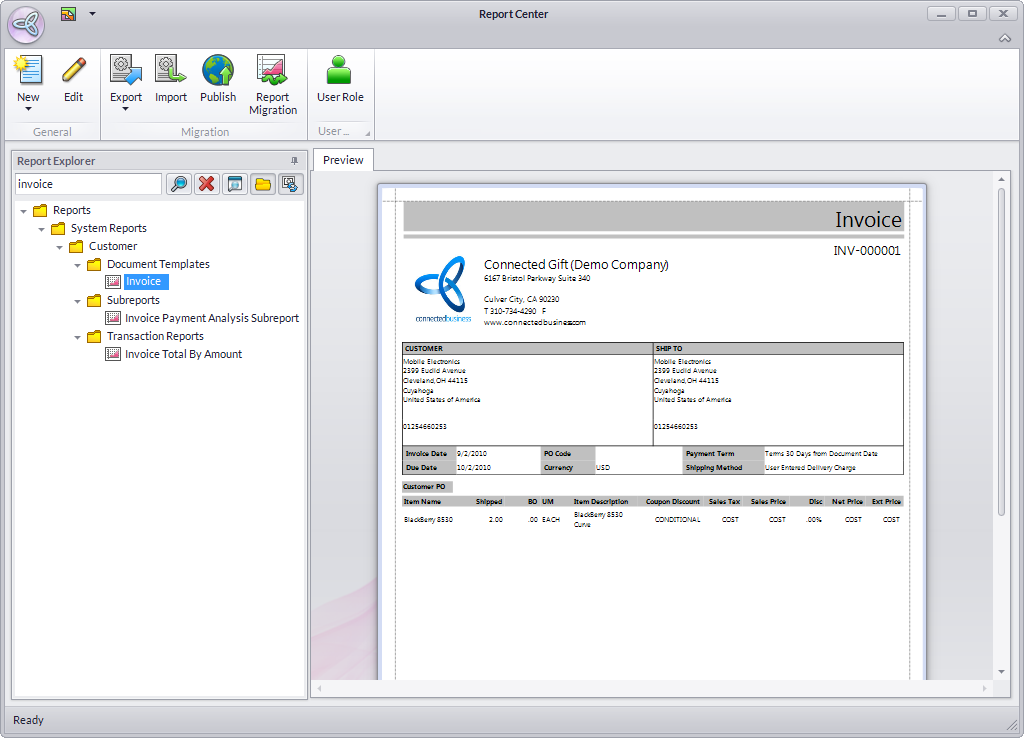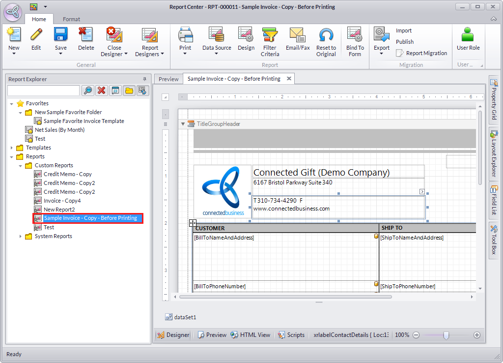 - Go to the Report Center > Reports Explorer to search any report or document template.