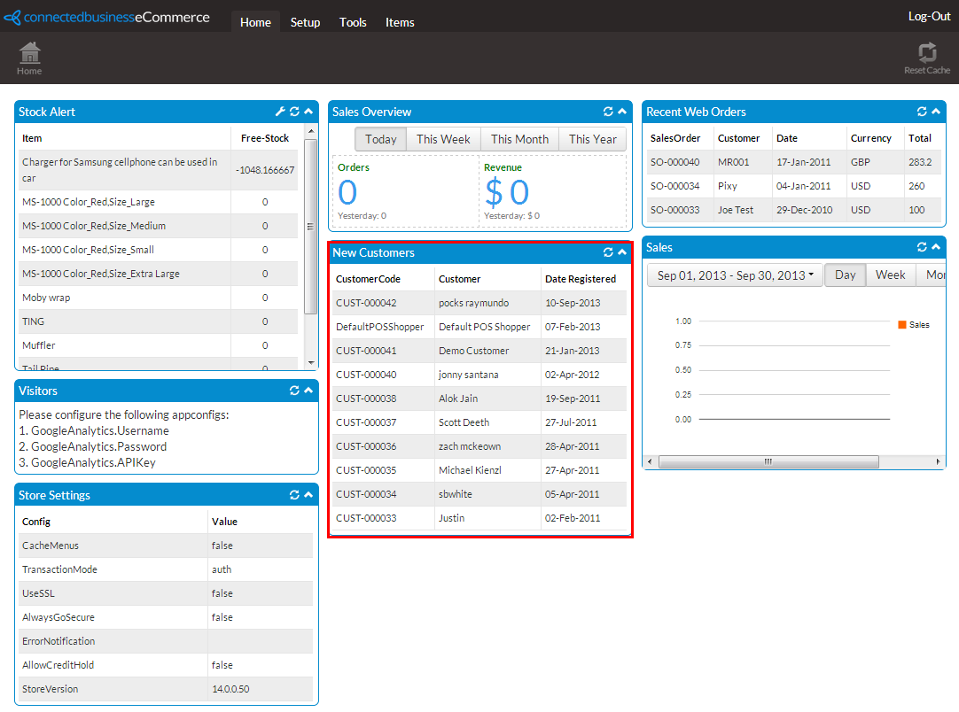 - The Admin Site Home Page will be displayed. The list of customers will be displayed under the New Customers section.