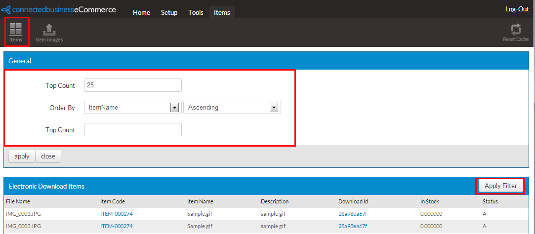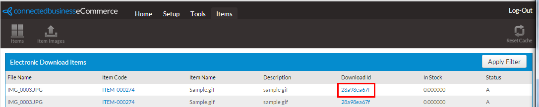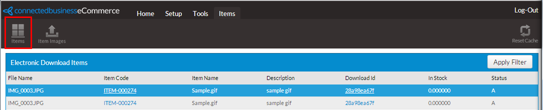 - From the Home Page, switch to the Items tab, the list of Electronic Downloads will be displayed.