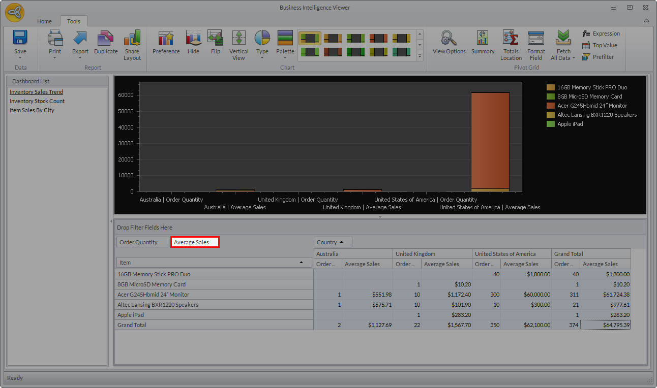 - Click on the BI Viewer menu from the module you selected. The Business Intelligence Viewer window will be displayed.