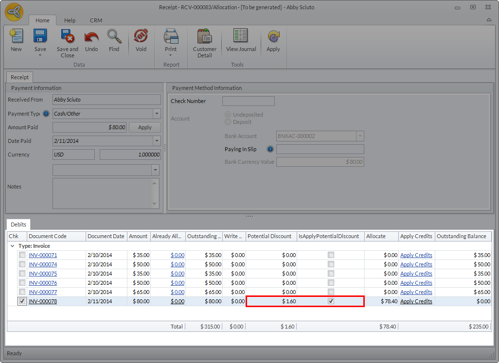 Potential discounts from settlement terms can also be applied when allocating customer payments.