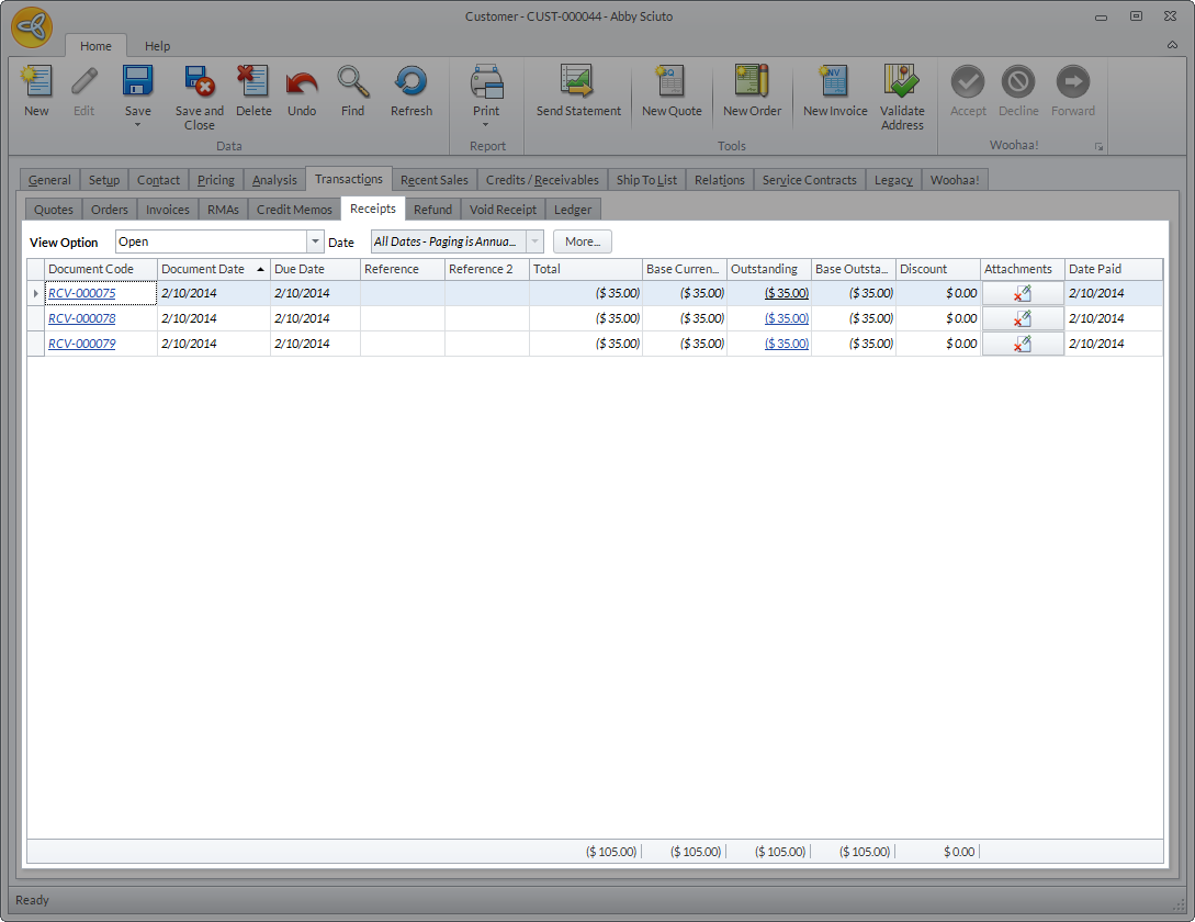 All deallocated payments will be treated as unallocated payments or credits. You can find the list of unallocated and partially allocated receipts from the Customer Detail form > Transactions > Receipts. Set the View Option to Open to view the list of all unallocated customer receipts.