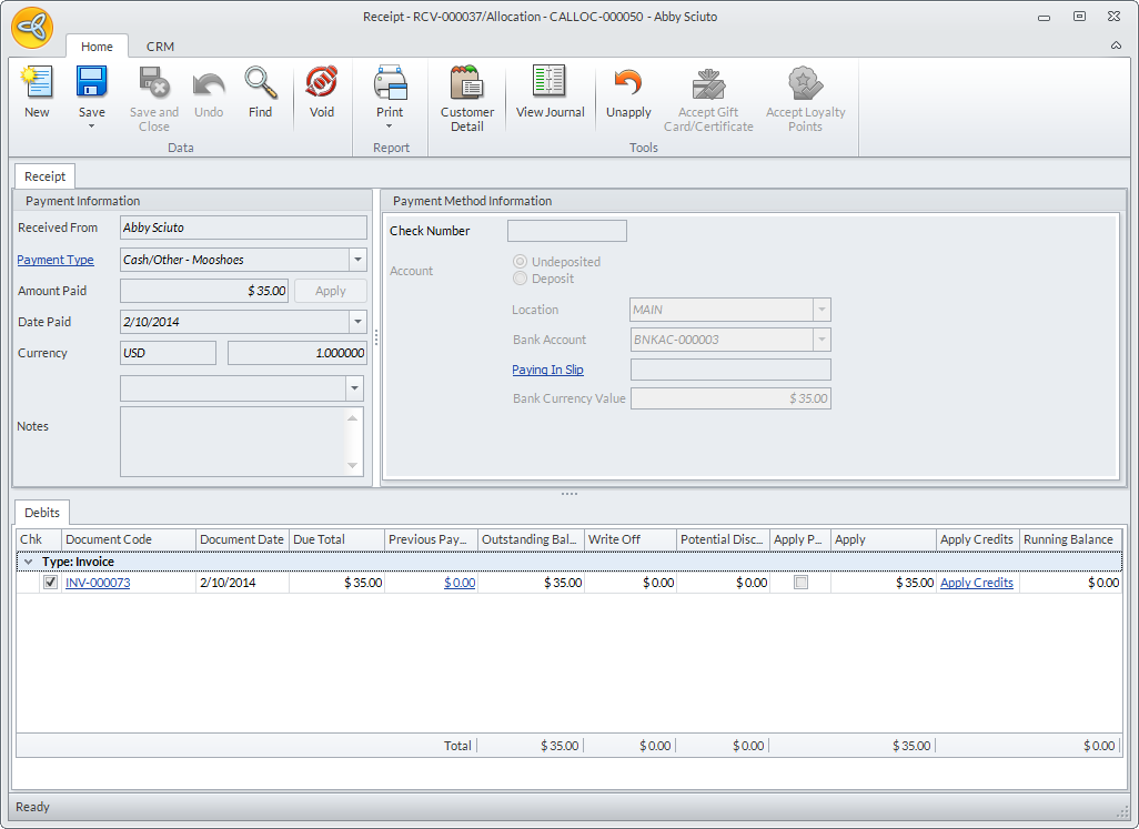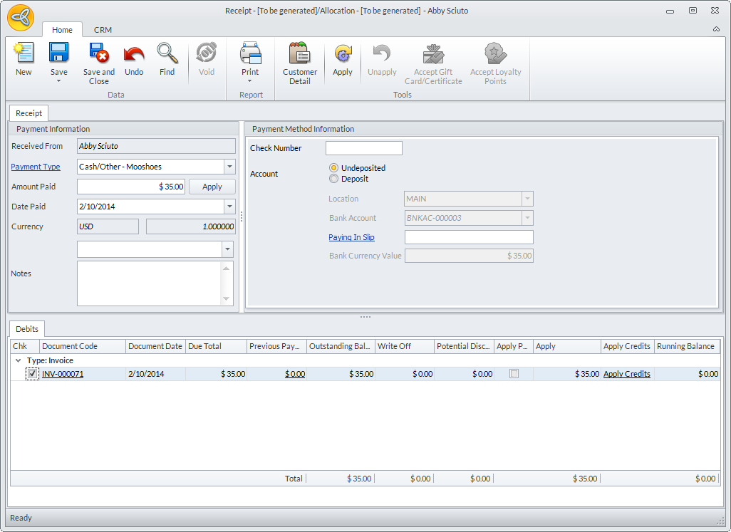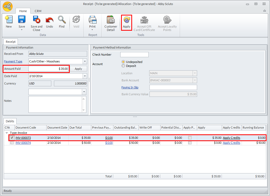 Clicking the Apply button automatically saves the payment.