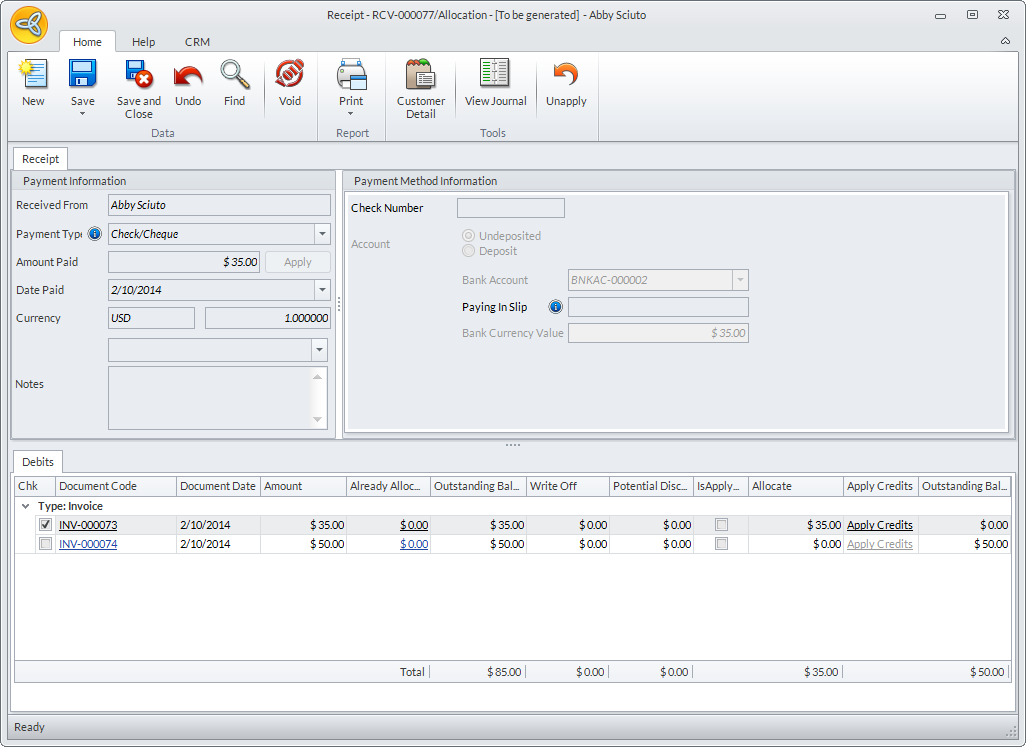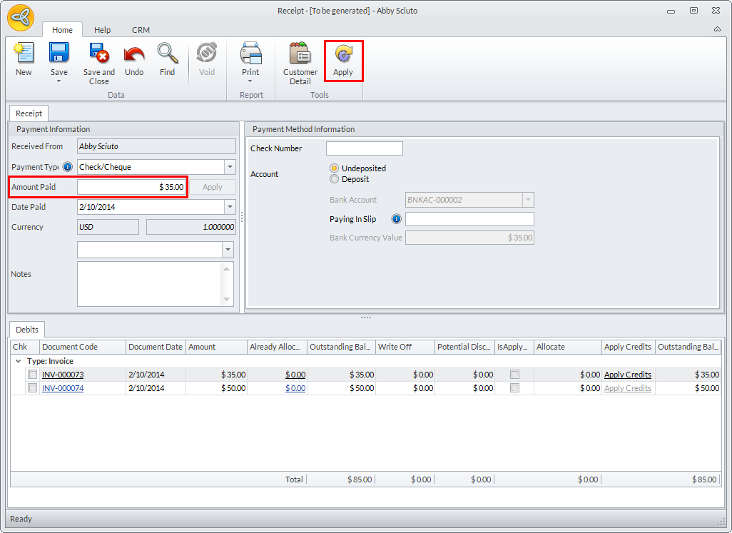 In Connected Business v14, allocating payments have been made easy by automatically entering the amount to be applied upon selecting the invoices to be paid.