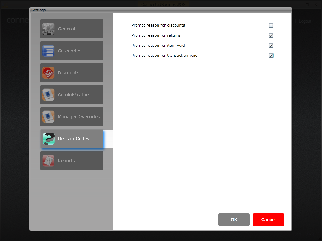 To set reason codes for POS transaction, simply tick the checkbox right next to the reason code and click OK to apply the changes.