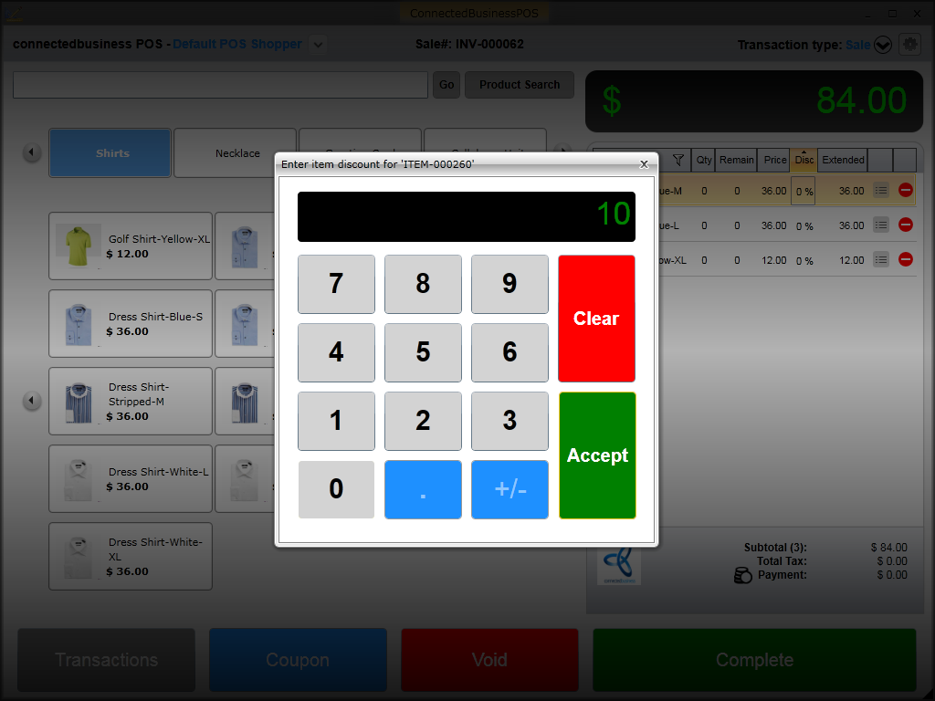 - The Enter Item Discount window will be displayed. Specify the discount value and click Accept.