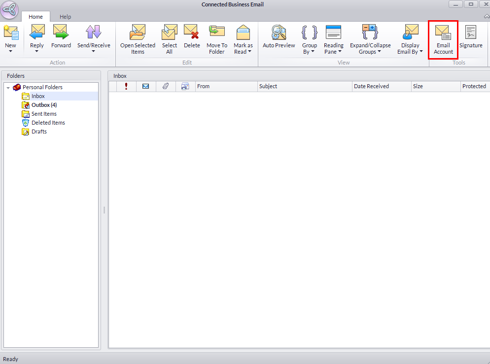 - In the Connected Business Email form, click on the email account you will use from the Folder List. Then click on the New button and select Email. The Email Composer will display.