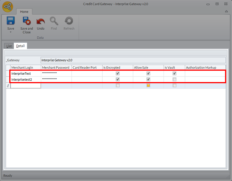 Connected Business 15 enables POS administrators to assign individual workstations to a single dedicated merchant login for processing credit card transactions. In order to use this feature, the company is required to register one or more login accounts through the Interprise Gateway v2.0 credit card processing system.