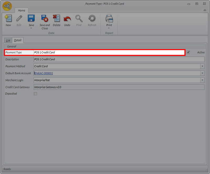 Next, you need to create dedicated payment types. Go to Banking > Setup > Payment > Payment Type. Click on the New button. On the Payment Type field of the form, you can use a file name that will indicate that this payment type is dedicated for a specific POS workstation.