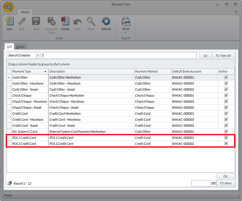 To view the list of Payment Types that you have configured, go to Banking > Setup > Payment > Type.