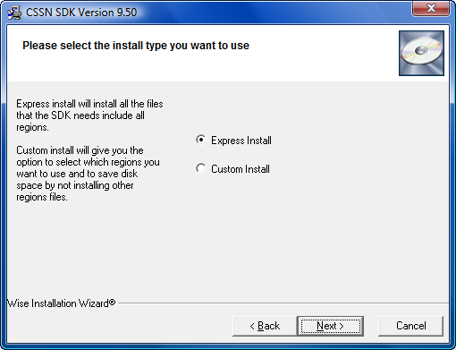 - Express Installation- this type of installation will automatically install all the files the SDK needs including all regions. We recommend using this installation type.