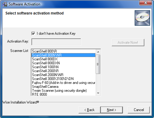 - You will be directed to the software activation page. Select the driver for ScanShell 800N\NR Scanner on the list. Click Next button to continue or press [Alt + N] key+s. Note: If you are using a device which is not listed in the Scanner List and if it’s a TWAIN device then select TWAIN Scanner option.