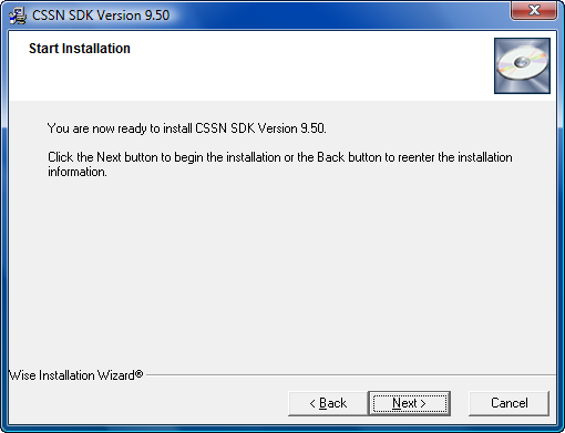 - On the Start Installation page, click on Next button to begin installing the CSSN SDK.