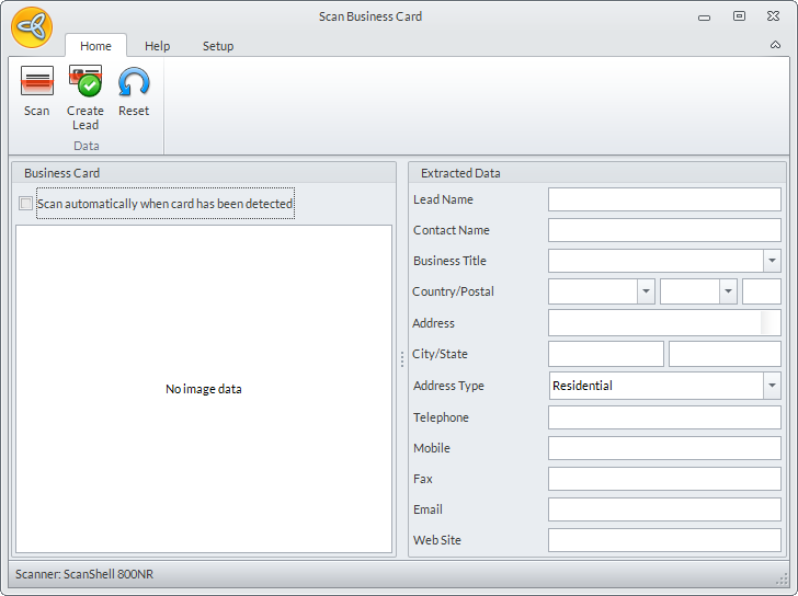 - Click on Lead > Scan Lead. The Scan Business Card form will display.