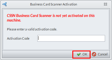If you do not have an activation key, a prompt will display asking you to enter the activation code. If you have a valid activation code, you may now proceed to scan business cards.