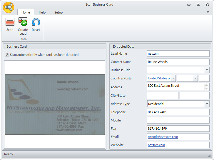 Follow these steps to scan business cards and automatically create a lead without the need to enter the specific details including the addresses, phone numbers of the lead.