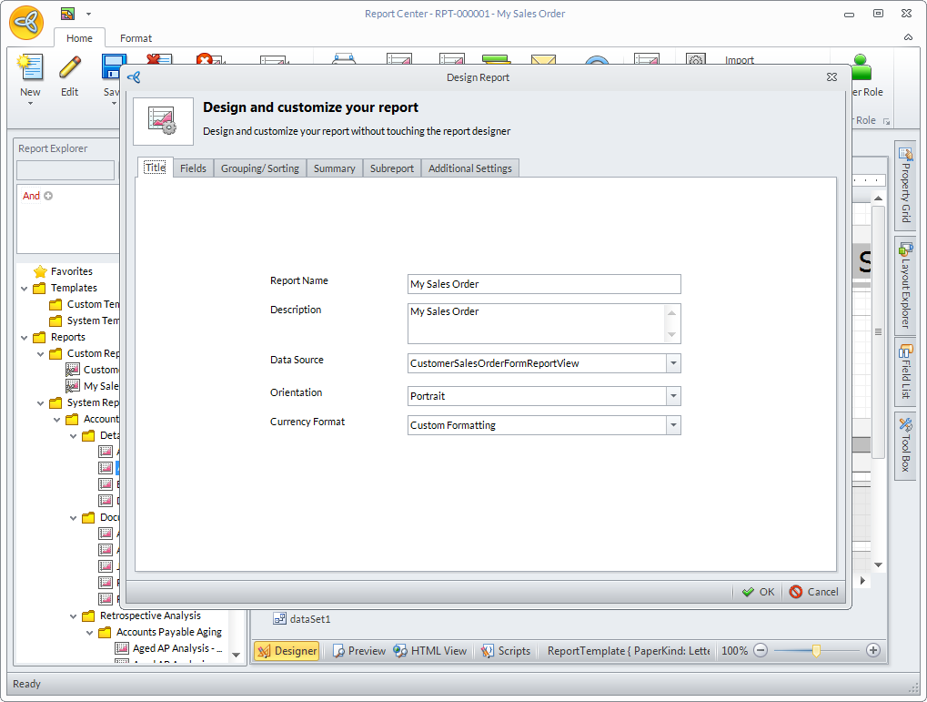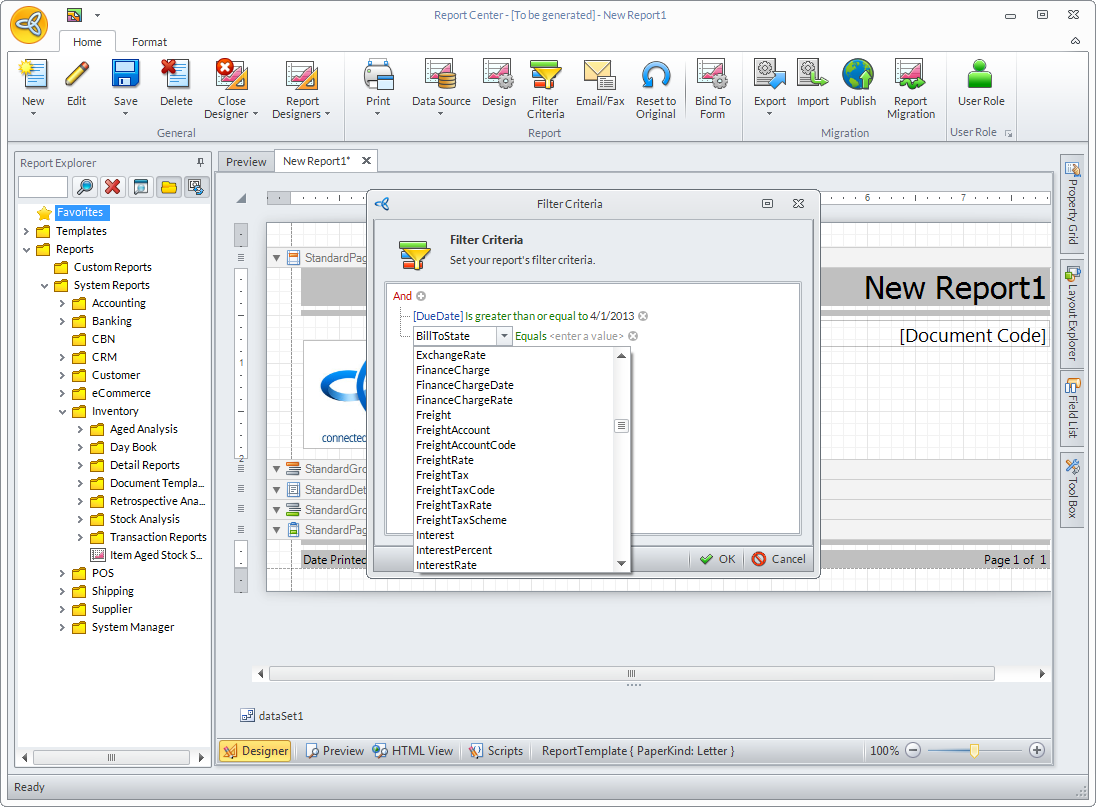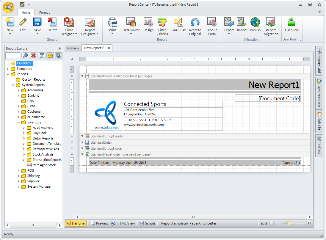 - Click on the New menu ► New Blank Report or press [Ctrl] + [N] keys. A blank report template will be displayed.