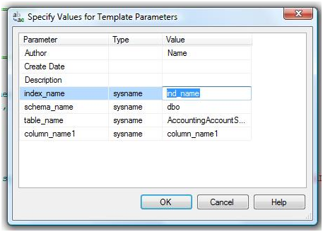 - Enter the index name and column name or you can enter the name directly in the script.