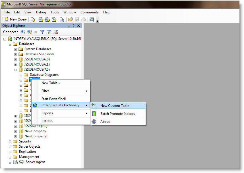 Below is a demonstration on how to create different custom objects using the Data Dictionary in the SQL Server environment.