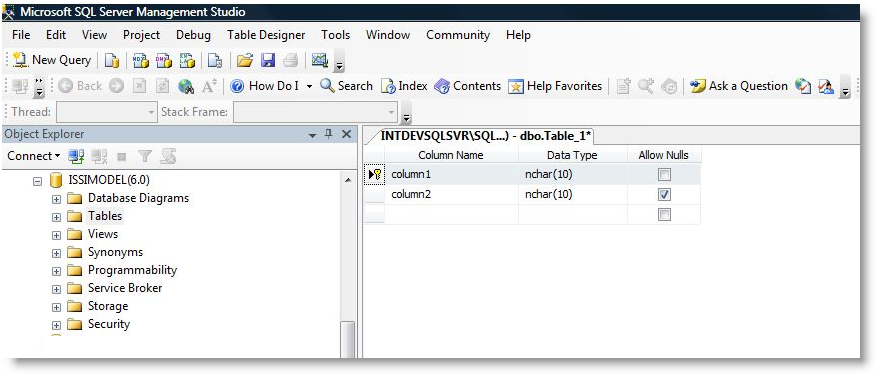 - Refresh the table list in the Object Explorer. Verify that the table and column name name has a developer ID.