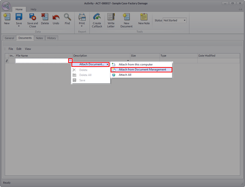 - Click the ellipsis > Attach Document > Attach from Document Management.