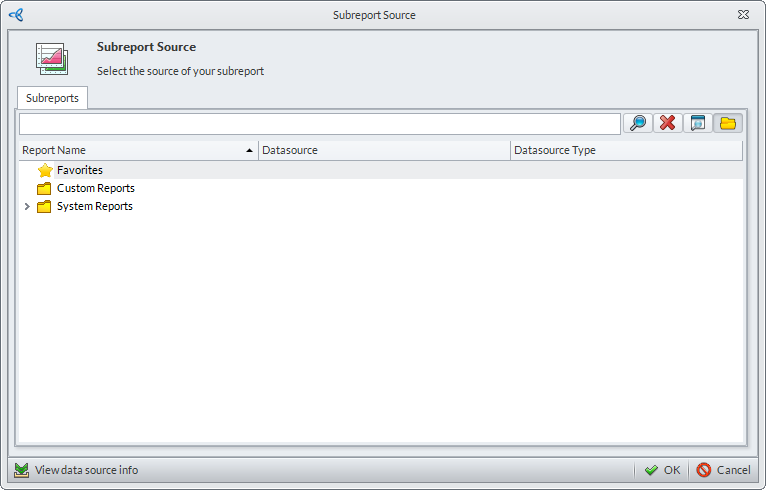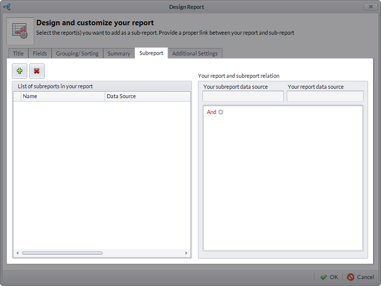 Select a specific report to be added within the main report. Please refer to Add Subreport documentation for more information.