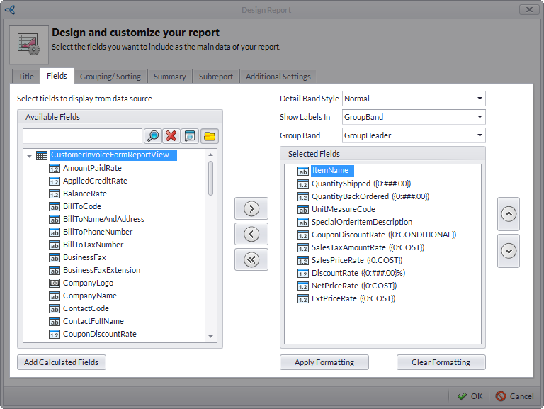 - Click on the Apply Formatting button to modify the format of the data fields.