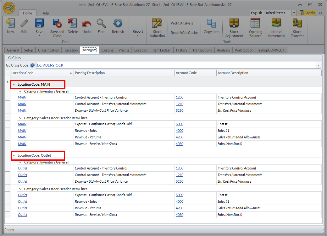 Suppose you select the stock item under the Sales Analysis,you can see that the locations are split into different locations.