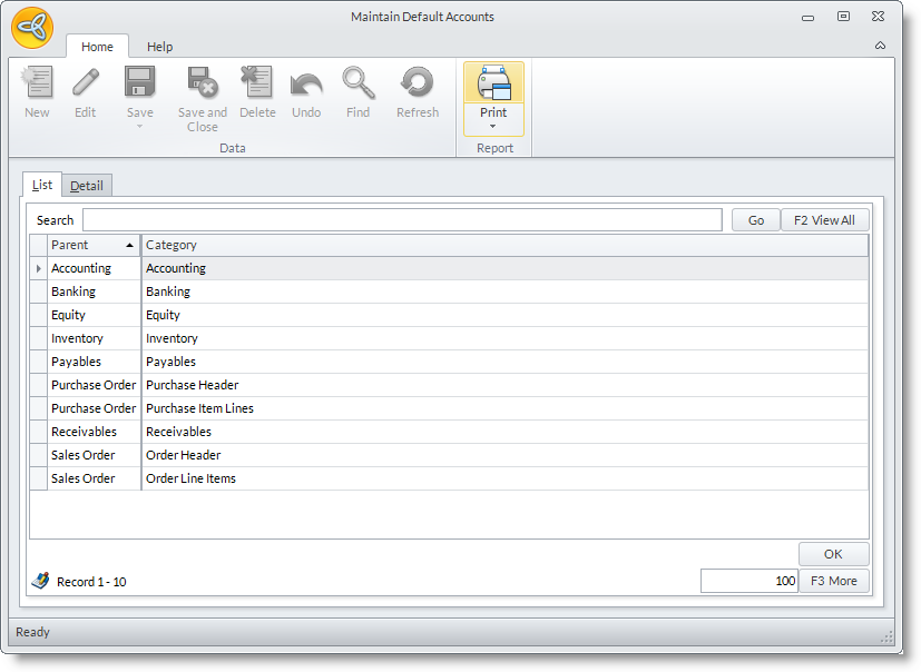 - From the Accounting Module, select Setup > Default Accounts. The Default Accounts form will display.