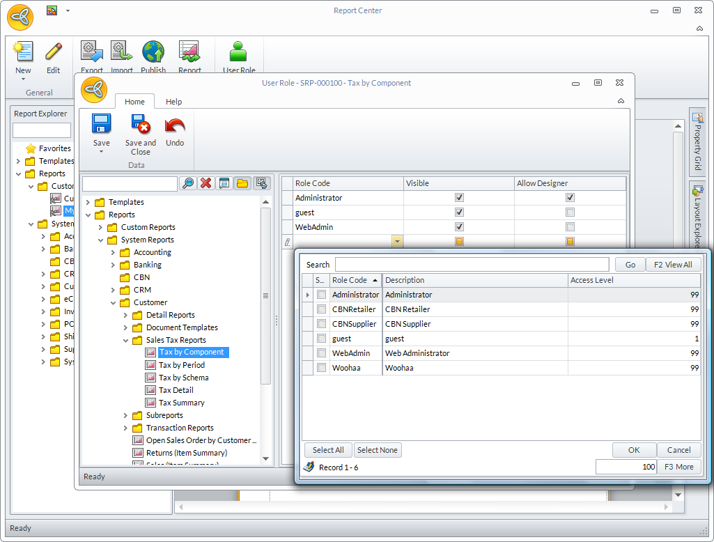 - On the Report Center window, click the User Role button from the menu options.