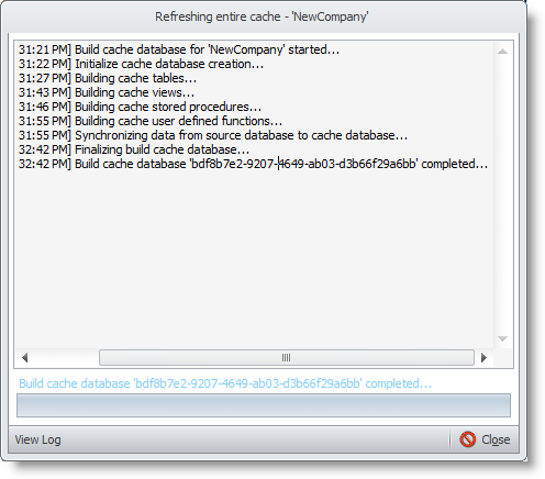 - A pop-up window will be displayed indicating the progress and the details of building the new cache database.