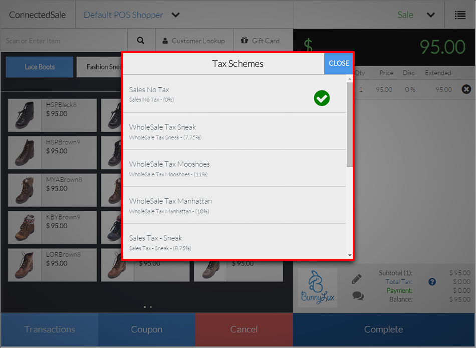 Connected Business POS can process sales that are generated by multiple sales channels, including transactions from the web store or other physical locations. If the default tax code configured within a POS setup is not applicable to a sales transaction, you can change the settings to enable the tax override feature.