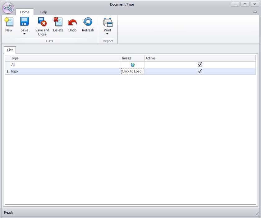 - Specify the name of the document on the Type column. You may add an image to easily recognize the format of the document on the system.