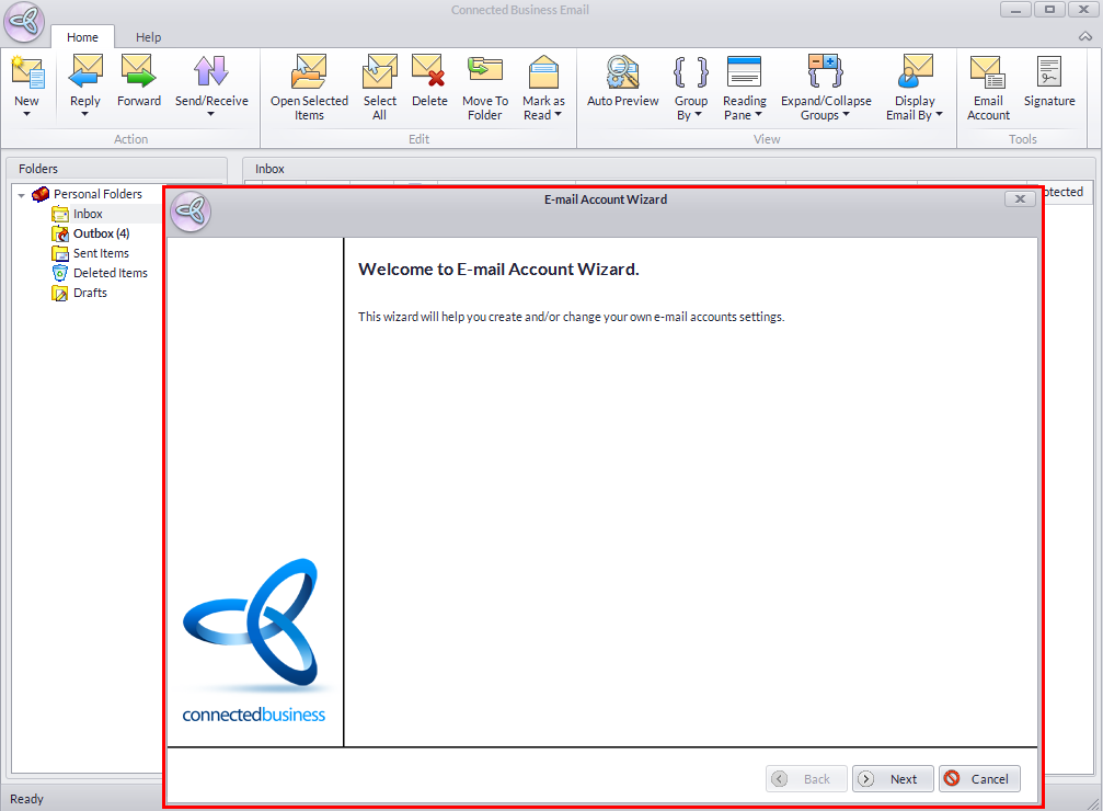 The Connected BusinessEmail is the email client component of the Connected Business Email solution. It currently works with POP3 email servers and will support SMTP and HTTP servers in the future releases.