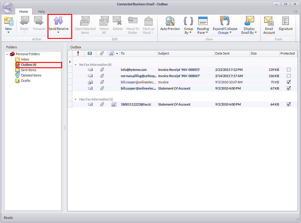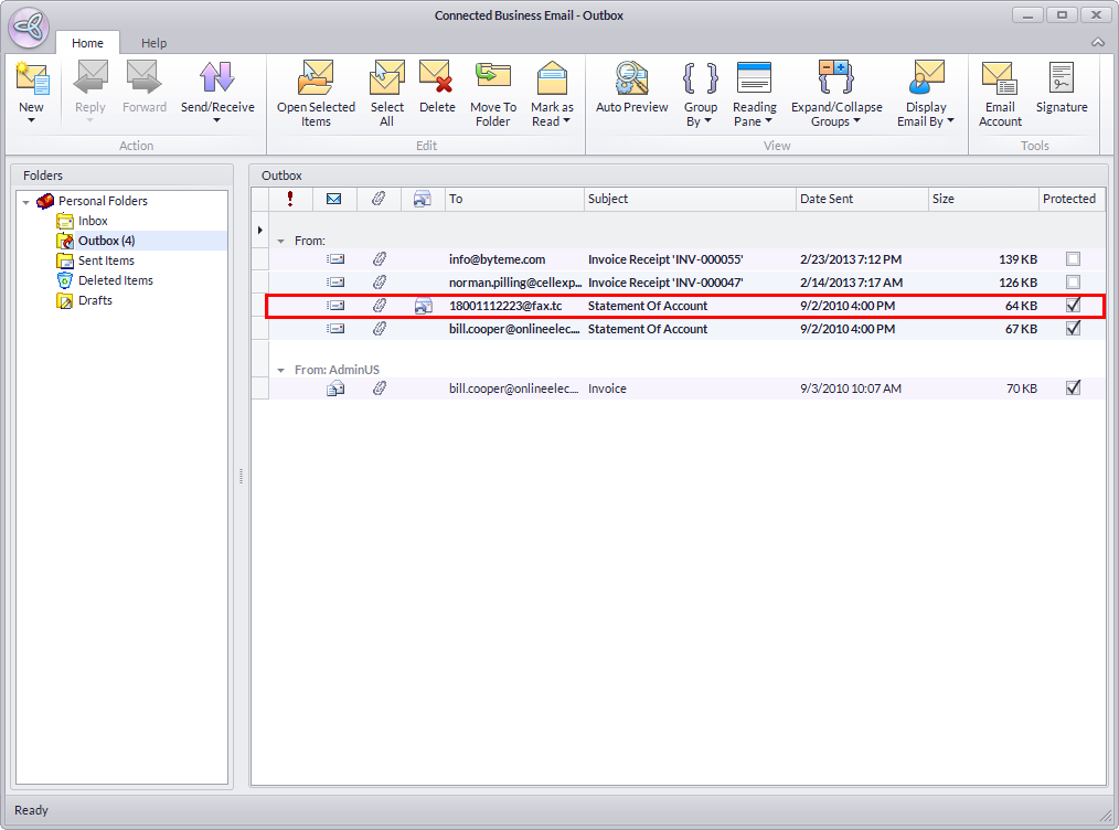- Click on the Mail button from the menu of Connected Business. The Connected BusinessEmail formwill display. Fax messages sent or received have a fax icon before the fax recipient address.