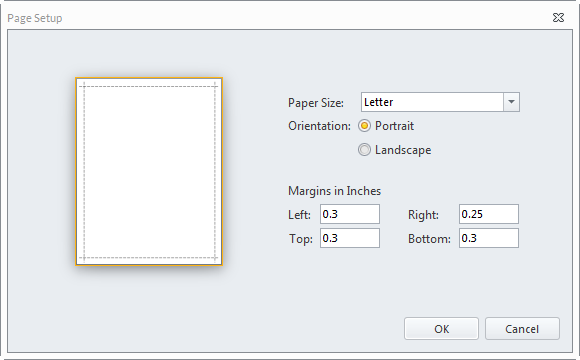 Margins in Inches | Set the margins for the Top, Left, Right, and Bottom of the page. |